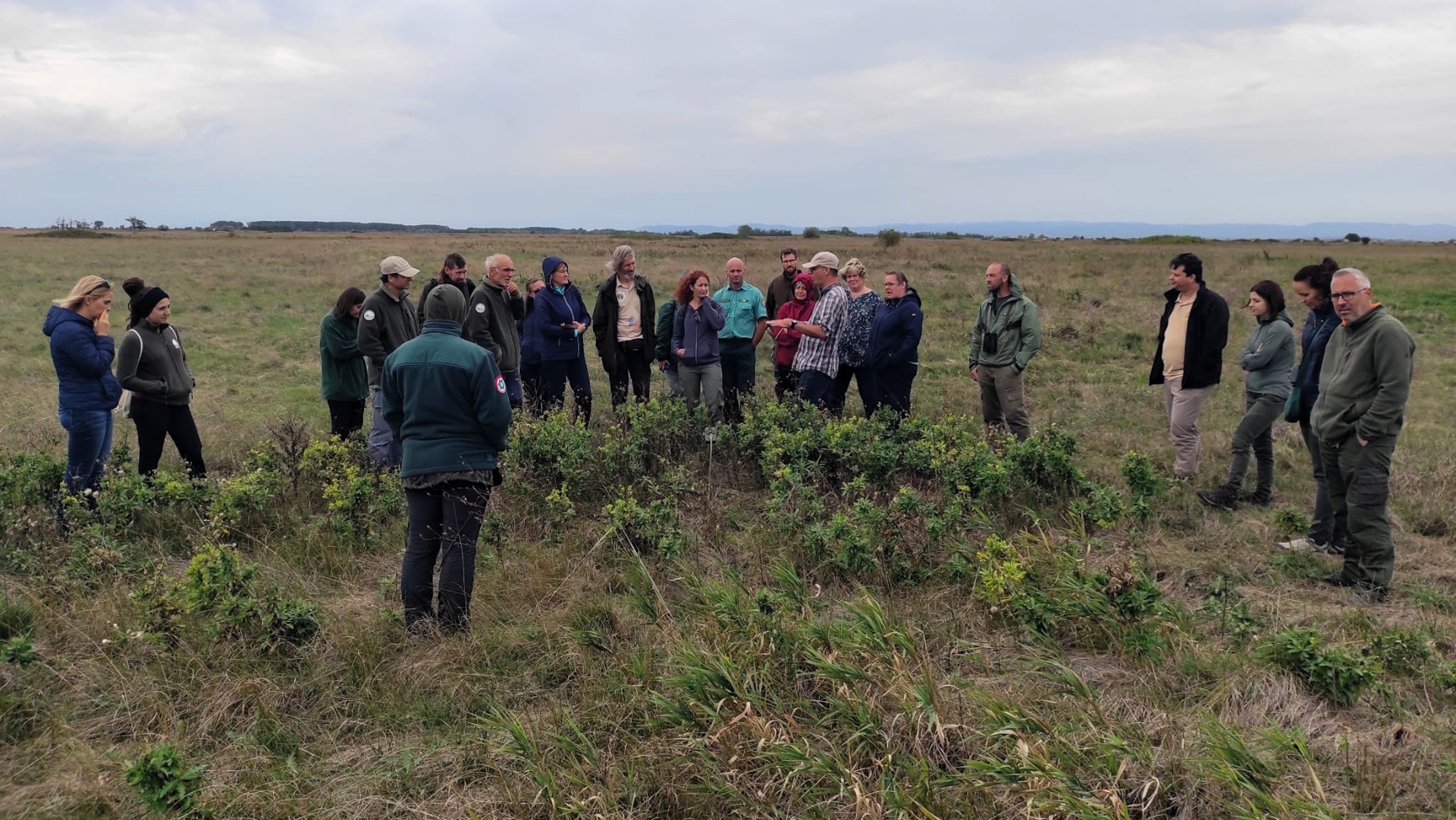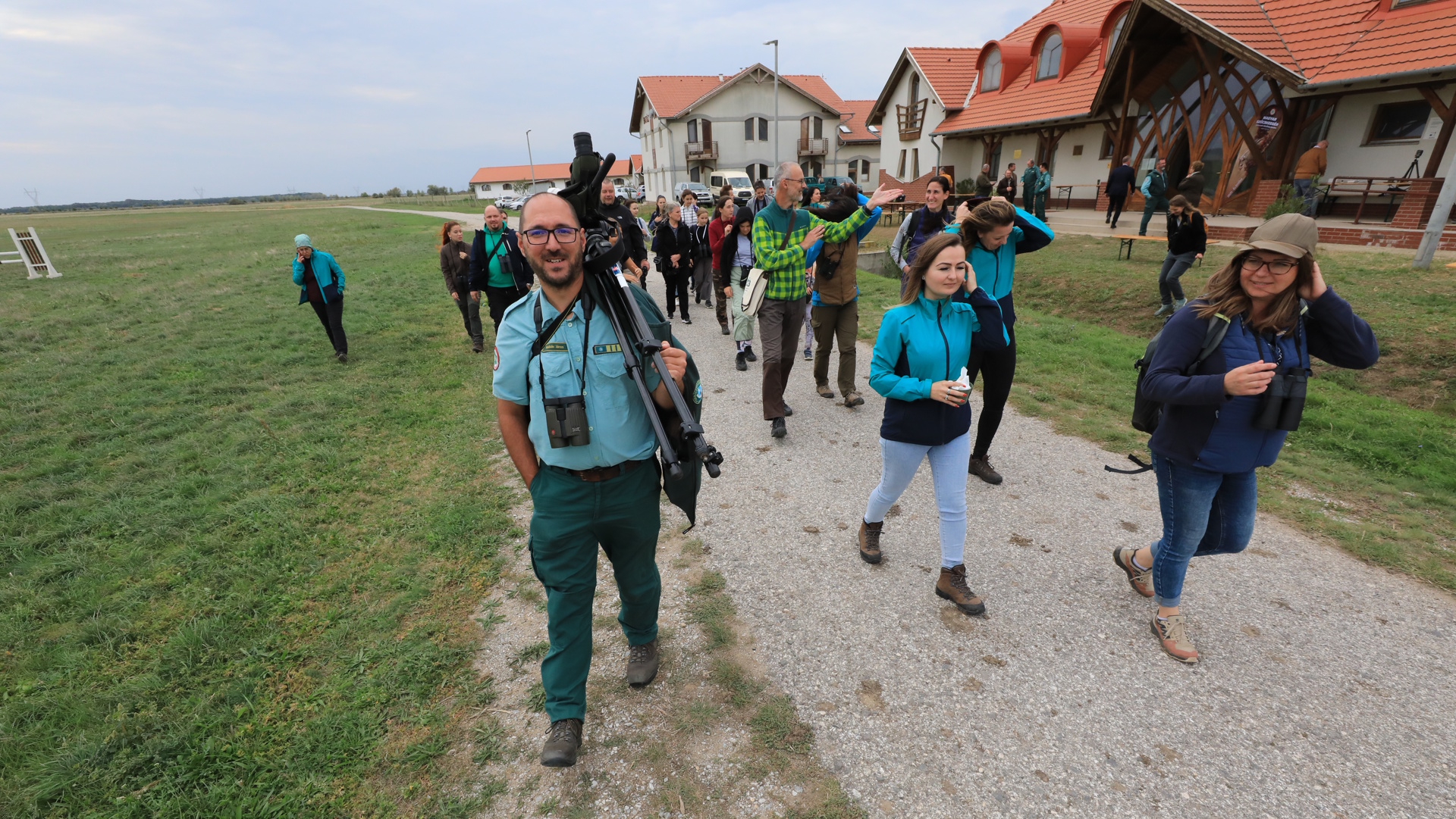 Az eseményt terepi programokkal zártuk, amelyek közé tartozott a kihalt faluként elhíresült Nagyecsér templomának megtekintése és vele együtt a táj régészeti jelentőségének megismerése. Egy másik lehetőség volt a rendezvényhelyszín körüli madarászséta, amely során - a kissé szelesre forduló időjárás ellenére - számos pusztai fajt meg lehetett figyelni, így például az éppen akkor gyülekező kék vércséket (Falco vespertinus) is. A harmadik pedig egy kimondottan a névadó faj élőhelyére koncentráló túra volt, ahol a nemzetipark-igazgatóságok, valamint a természetvédelmi szervezetek szakemberei megtekinthettek egy tényleges szöcskeegeres élőhelyfoltot, ahol kérdéseikkel, észrevételeikkel járulhattak hozzá a további együttgondolkodáshoz.