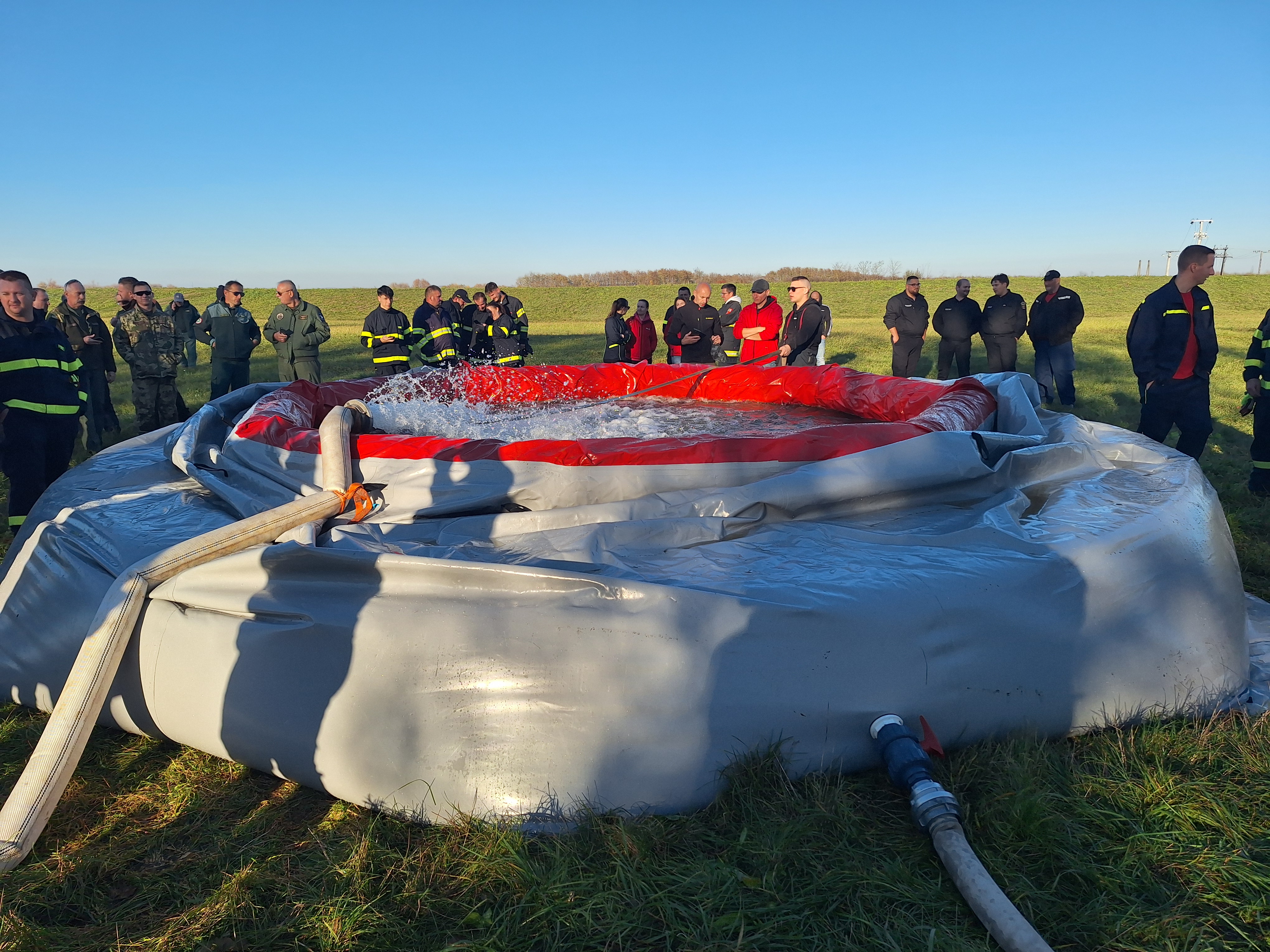 A gyakorlati képzés során használatba került a hazai gyártású medence prototípus is. Azokon a helyszíneken, ahol nincs természetes vízfelvételi pont, vagy nagy távolságban található, esetlegesen biztonságosan nem használható ott szükséges a mobil vízfelvételi pontok kialakítása. Ennek tesztelése, bemutatása és használatának oktatása alkotta a gyakorlati képzés fő gerincét.