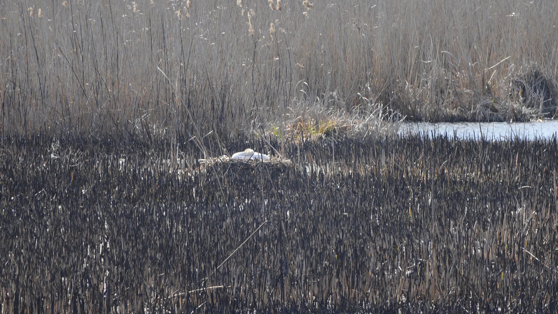 Kotló Bütykös hattyú, a fészke körül minden leégett. Fészekalja 11 db tojásból is állhat, melyek nagy eséllyel tönkrementek (Kép: Bereczky Attila)