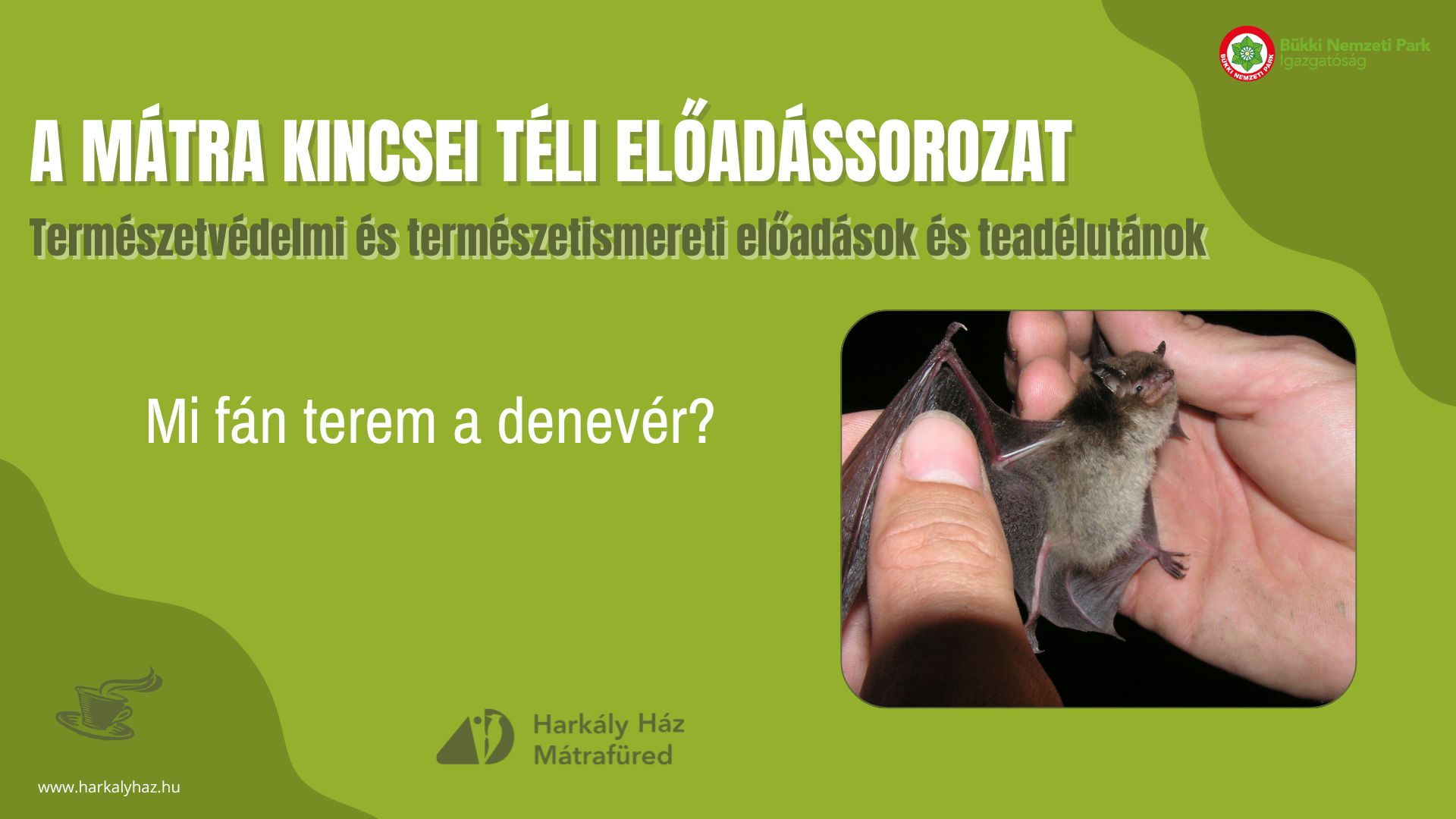 A korábbi évekhez hasonlóan novembertől februárig havi rendszerességgel, keddi napokon 17.30 órai kezdettel várjuk az érdeklődőket a mátrafüredi Harkály Házban természetvédelmi, természetismereti előadásainkkal. Programunk egyaránt szól a természetvédelem iránt érdeklődők és a szakmai közönség számára is. Tartson velünk, ismerjük meg közösen a Mátra természeti értékeit!
