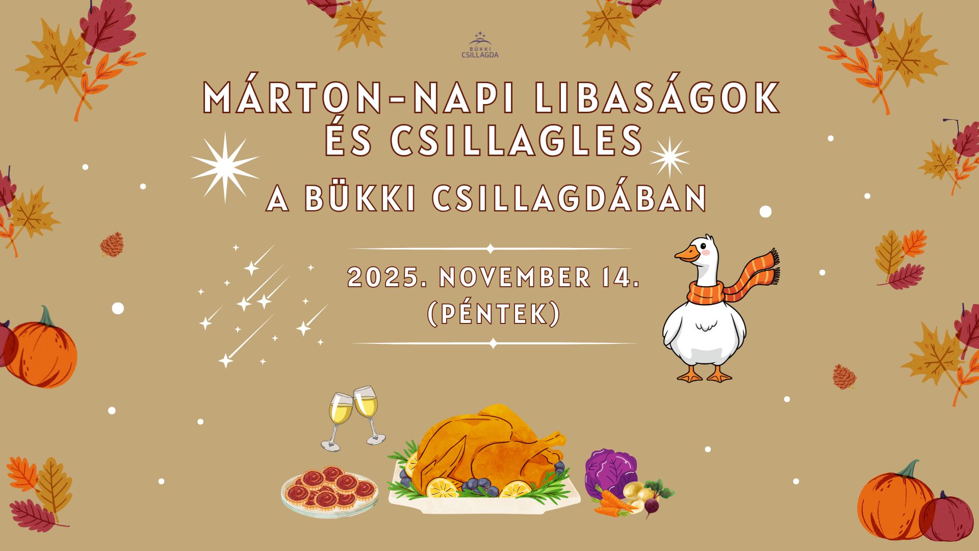 November 14-én, pénteken, egy igazi különlegességgel várjuk a gasztronómia és a csillagos égbolt szerelmeseit a Bükki Csillagdába, ahol a Márton-napi hagyományokat egy felejthetetlen csillaglessel, az égbolt rendkívüli élményével, a Leonida meteorraj megfigyelésével kötjük össze.